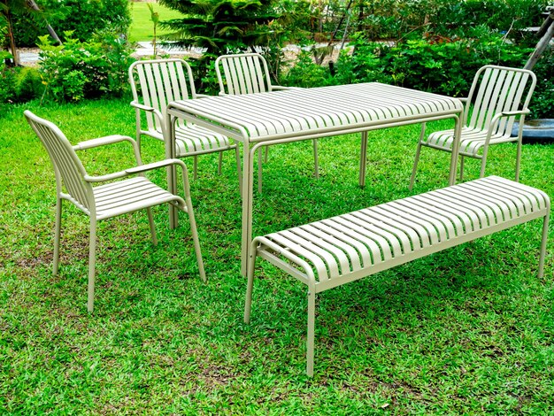 Meble metalowe, takie jak stal nierdzewna czy aluminium, oferują stylowy, nowoczesny wygląd. Są odporne na rdzewienie i działania atmosferyczne, co czyni je trwałym wyborem. W zależności od użytego materiału, mogą wymagać od czasu do czasu konserwacji, aby zachować swój blask i estetykę. -