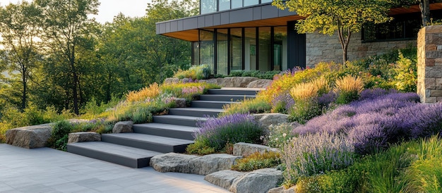 • Roślinność: Mieszanka roślin iglastych, liściastych i bylin to sposób na uzyskanie różnorodności kolorów i tekstur przez cały rok.